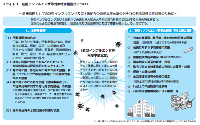 - 特別寄稿 新型インフルエンザ等対策特別措置法の概要