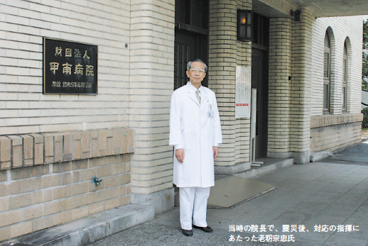 甲南病院の当時の院長で被災後の対応の指揮にあたった老籾宗忠氏(現特別顧問)は「震災直後に家を出て、車で病院へ向かったのですが、とにかく病院が建っているかが心配でした。建物も患者も無事だと知ったときは、本当にほっとしたことを覚えています」と当時を振り返る。