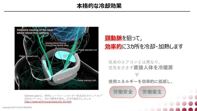 これらの3つの領域を解決するソリューションとして生まれたのが、「ウェアラブルエアコン(身につけるエアコン)」という製品です。
