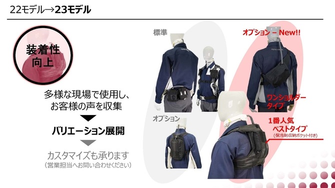 ウェアラブルエアコンは、現在までに国内企業350社以上に採用されています。これまでは建築関係や工事現場、物流倉庫や製造業で多く導入いただいておりましたが、2023年に商品を改良し、性能を向上させたことにより、鉄鋼業や化学プラント、発電所など、より過酷な現場での採用が内定しています。