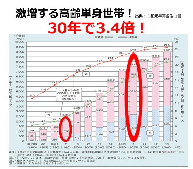 災害救助法は1947年に成立したが、救助の種類は医療や助産であり、福祉はなかった。この時期の75歳以上高齢者は100万人以下で、しかもその多くは家族と同居していた。それが1995年の阪神・淡路大震災時には700万人を超え、同時に多くの高齢者等が災害関連死で亡くなった。それでも救助法に福祉は位置付けられないまま、2025年には2100万人を超え、しかも単身者世帯が最多という状況にある。