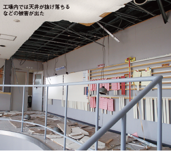 茨城工場は内陸寄りに位置しているため津波による直接的な被害の心配は無い。しかし、数分間の通話では、震度6強の揺れで、建屋内部で一部天井が落ちたり壁が崩落するなどの大きな被害が出ていることが判明した。ただ、当日働いていた93 名ほどの従業員については1人が頭を打撲するなど軽く負傷した程度で大きな人的被害が無かったことも分かった。ちなみに、工場は20 数年前に建てられた鉄骨ALC造で耐震基準は満たしている。数分間の通話では、作業ができる状態ではなかったため、マネージャークラスを残し、一般従業員とパート社員はすべて帰宅させたことまで報告を受けた。
