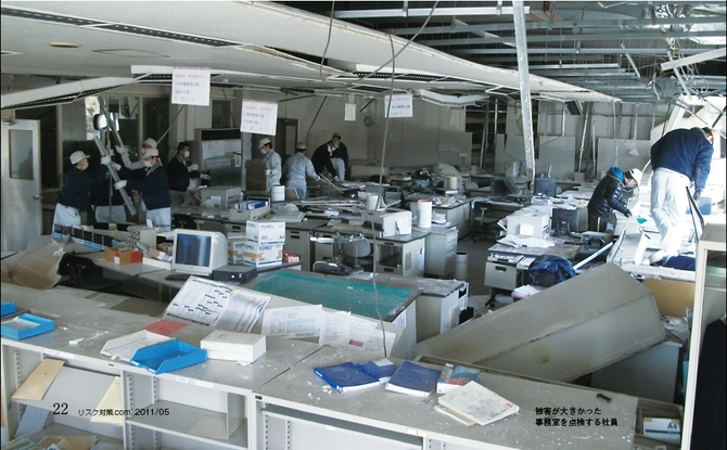 被災当日は工場長と副工場長が東京出張で不在だった。それでも、現地では代理の課長が指揮命令をつかさどり混乱は起きなかったという。同社が策定したBCP では、偶然にも、工場長と副工場長の不在時に茨城工場が被災するという今回の被災と同じシナリオを立てていたのだ。