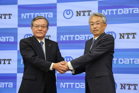 8日に記者会見したNTTの島田明社長は「これまでより柔軟、迅速かつ大胆に成長投資を実行していきたい」と語った。同席したNTTデータGの佐々木裕社長は「大きな船に乗ることでタイムリーな投資ができる」と意義を強調した。