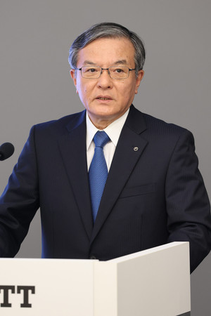 〔写真説明〕記者会見するNTTの島田明社長=8日午後、東京都千代田区