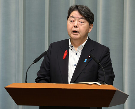 〔写真説明〕記者会見する林芳正官房長官=6日、首相官邸