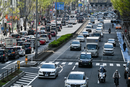 〔写真説明〕東京の大通り走る車=資料(AFP時事)