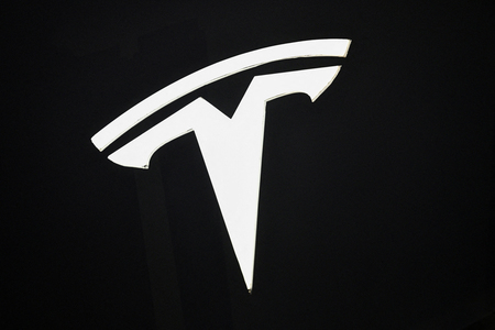 〔写真説明〕米電気自動車(EV)大手テスラのロゴマーク(AFP時事)