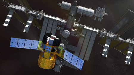 〔写真説明〕国際宇宙ステーション(ISS)に接近する新型宇宙ステーション補給機(HTV―X)の想像図(JAXA提供)