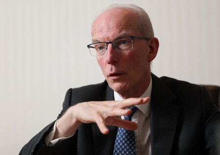 〔写真説明〕インタビューに応じるQBEインシュアランス・グループのホートン最高経営責任者(CEO)=13日午前、東京都千代田区
