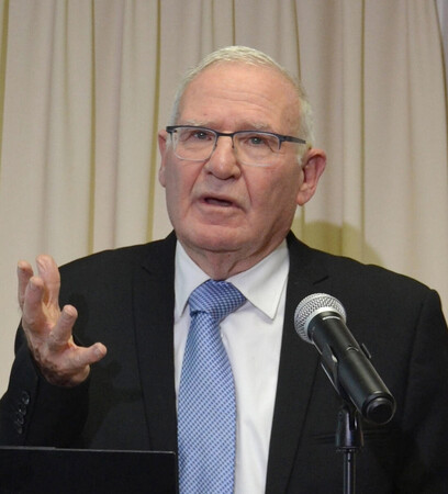 〔写真説明〕記者会見する元イスラエル軍情報機関トップのアモス・ヤドリン氏=13日午後、東京都千代田区