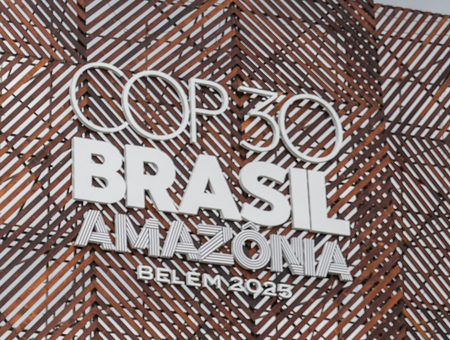 〔写真説明〕国連気候変動枠組み条約第30回締約国会議(COP30)のロゴマーク(EPA時事)