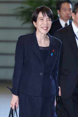 〔写真説明〕首相官邸に入る高市早苗首相=27日午前、東京・永田町