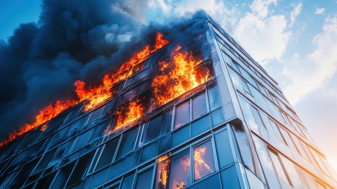 化学工場の製造ラインで深夜に火災。黒煙が上がり、出火原因と設備被害を調査中。