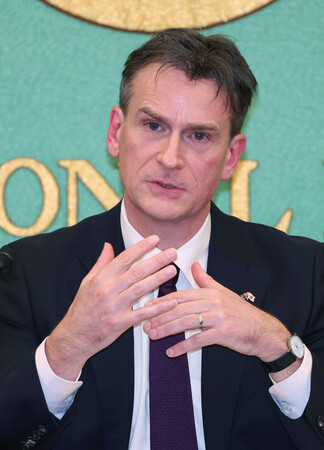 〔写真説明〕日本記者クラブで記者会見するオーストラリアのヘイハースト駐日大使=8日、東京都千代田区