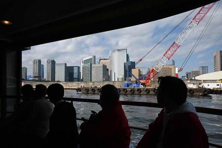 〔写真説明〕11月16日、東京・隅田川から望む建設現場(AFP時事)
