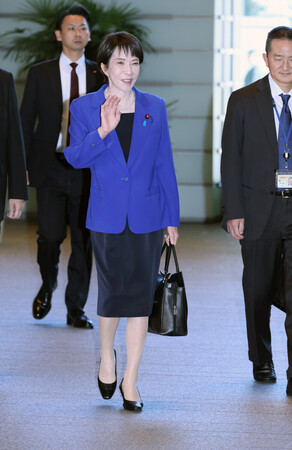 〔写真説明〕首相官邸に入る高市早苗首相=8日午前、東京・永田町