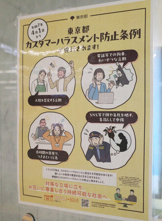 〔写真説明〕東京都のカスタマーハラスメント防止に関するポスター=2025年12月、東京都新宿区