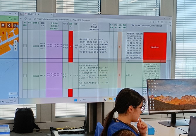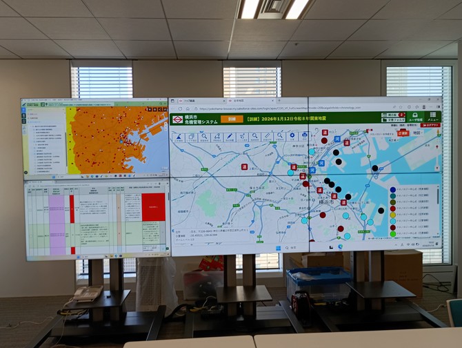 2026年1月14日、横浜市庁舎10階の災害対策本部運営室で、九都県市合同による大規模な図上訓練が行われた。市職員に加え、警察、自衛隊、海上保安庁、医療従事者、ライフライン事業者などが一堂に会し、市災害対策本部運営をシミュレーションした。