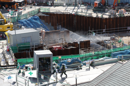 〔写真説明〕道路陥没事故の工事現場=26日、埼玉県八潮市