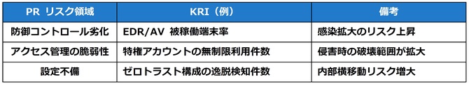 もし予兆が知れるなら、攻撃を完全に防ぐことは難しくとも、早めの対応をとることで被害の拡大を防ぎ、インシデントの影響を最小に抑えることが可能になるかもしれません。ここでポイントとなるのは、KPIではなく、KRI(重要リスク指標)です。