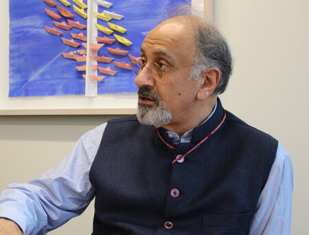 〔写真説明〕インタビューに応じるギル世銀チーフエコノミスト=3日、ワシントン