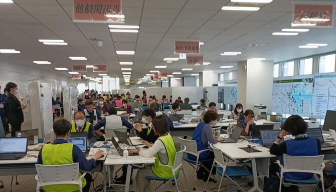 2026年1月14日、横浜市庁舎10階の災害対策本部運営室で、九都県市合同による大規模な図上訓練が行われた。市職員に加え、警察、自衛隊、海上保安庁、医療従事者、ライフライン事業者などが一堂に会し、市災害対策本部運営をシミュレーションした。