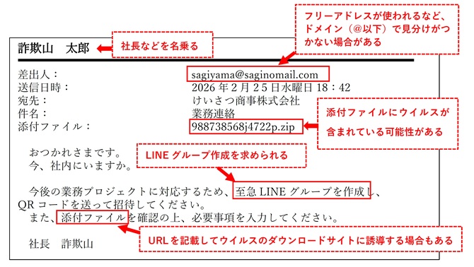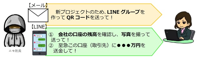 社長などをかたってインターネット上で公開されている会社のメールアドレスにメールを送りつけ、業務命令を装いLINEグループの作成を要求した上、指定した口座に送金させる詐欺が流行しています。今回は「ニセ社長詐欺」の手口と気をつけたいポイントについて説明します。
