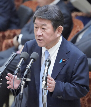 〔写真説明〕衆院予算委員会で答弁する茂木敏充外相=2日午後、国会内