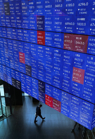 〔写真説明〕全面安の展開となった東京株式市場で、下落した株価を示すボード=4日午後、東京都中央区