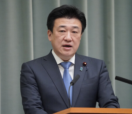 〔写真説明〕記者会見する木原稔官房長官=9日午前、首相官邸