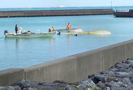 また、午後5時5分ごろには、現場を調査していた那覇海上保安部所属の巡視船の搭載艇が転覆。乗船していた海上保安官6人のうち、4人は別の船に救助され、2人は付近の岩場に避難した。いずれも命に別条はないという。