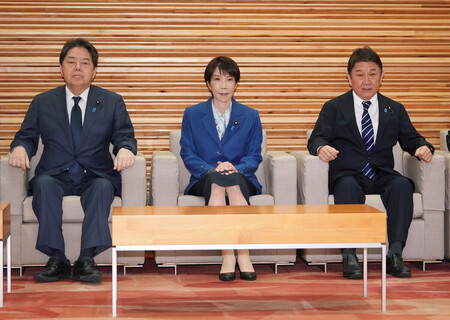 〔写真説明〕閣議に臨む高市早苗首相(中央)=17日、首相官邸