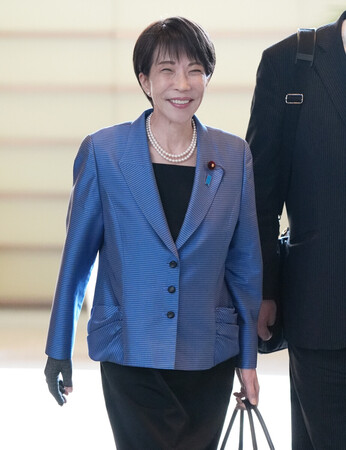 〔写真説明〕首相官邸に入る高市早苗首相=24日午前、東京・永田町