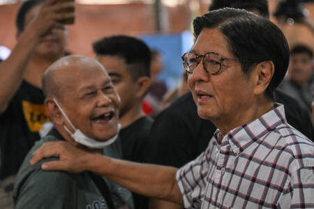 〔写真説明〕フィリピンのマルコス大統領(右)=17日、マニラ(AFP時事)