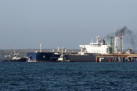 〔写真説明〕3月31日、キューバ北部のマタンサス港に到着したロシアの原油タンカー(EPA時事)