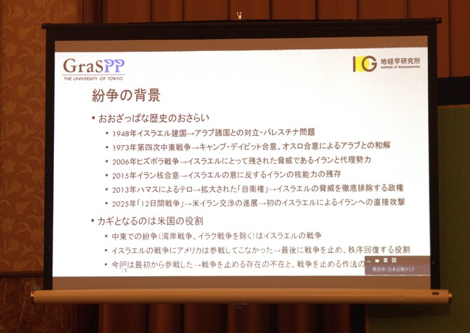 会見は、「イスラエル・米の対イラン攻撃 背景と影響」と題して日本記者クラブ(東京都千代田区)で行われた。