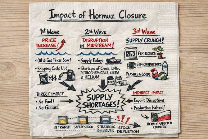 今、避けるべき過ちは、ホルムズ海峡の事実上の封鎖によって引き起こされた3つの混乱の波、すなわちオイルやガスの価格の高騰、中流での混乱による物流の遅延、そして肥料など物資の供給の不足が、順番に到来していると考えてしまうことだ。そうではない。それらは重なり合い、相互に影響し合い、異なる速度で世界システムを駆け巡っている。実際には、これは一部の国がすでに第3の波の影響を受けている一方で、他の国々は依然として第1の波による衝撃に対処しているに過ぎない。
