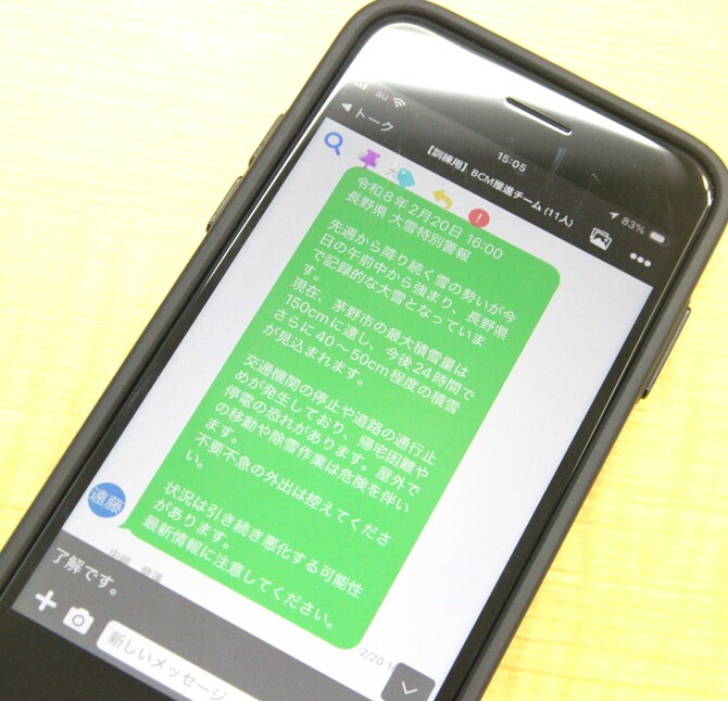 メッセージは本社施設管理部BCM推進グループのメンバー3人が考えたもので、実際にこうした事態が起きたというリアルな想定となっている。新型の感染症が国内で流行し始めたという内容である。