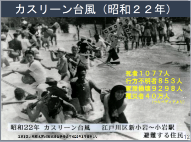 その山本さん、東京でも台風による高潮や水害が過去に起こっていることを教えてくれました。まずは、1947年に東京を襲ったカスリーン台風についてです。