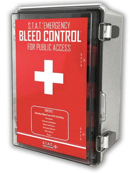 STAT救急セットの内容は下記の通り。簡単にAEDの横に設置可能。