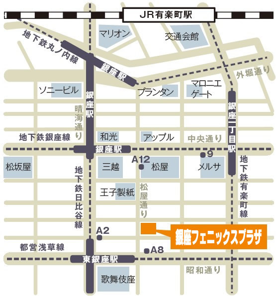 ●東京メトロ銀座線、丸ノ内線、日比谷線「銀座駅」 A12・A13出口より徒歩2分
