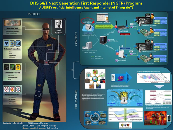 2016年11月2日、NASA(アメリカ航空宇宙局)のジェット推進研究所(カリフォルニア州パサディナ)は、AUDREY(Assistant for Understanding Data through Reasoning, Extraction and sYnthesis/理由付け・抽出・分析によるデータ理解アシスタント)という人工知能(AI)を使った、消防活動支援システムが、国土安全保証省とNASA共同開発が始まったと発表した。