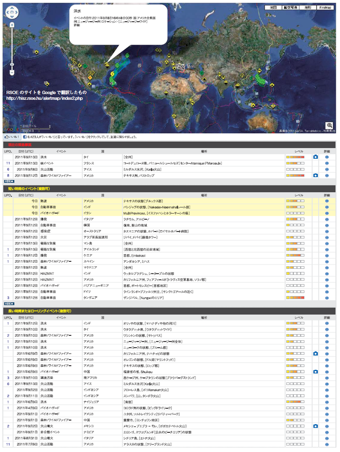 下の図は、ハンガリーに本部を持つRSOE(National Associationof Radio Distress)が運営しているサイトで、現在世界で起きている