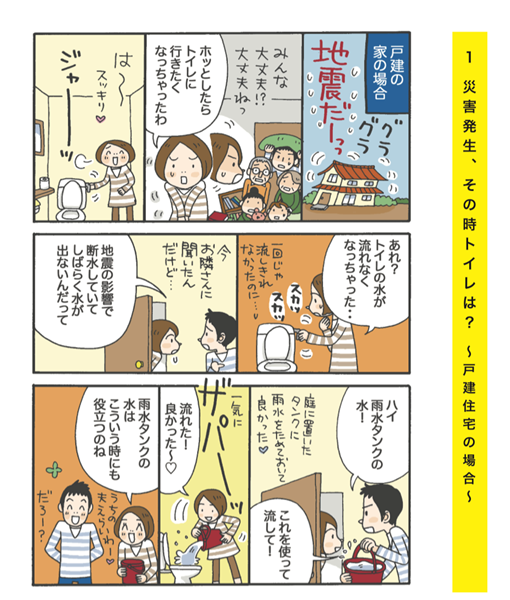 リアルだわー。これは、お子さんとも一緒に読んで、親子で災害時のトイレの重要性について学んでもらいたいですね。