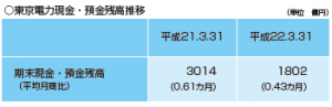 右記のように、東京電力の22 年3月末の手元現金・預金残高は平均月商の0.43 カ月分です。