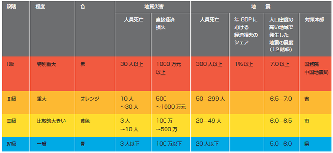 中国では四川大地震の反省を踏まえ、地震防災法(中国語で「防震減災法」という)の見直しを実施。2008 年の12 月には修正案をつくり、09 年5月から施行した。