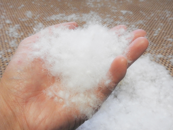 それは、羽根がいかにして空気を蓄えるか、また、水鳥の行動パターンをみればピンときます。水鳥は、体温を羽根に伝えて、羽根自体を膨らませていますよね。だから冬にぽわぽわになっています。