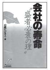 1984 年( 昭 和 59 年 )に 出版された日経ビジネス 編「会社の寿命“盛者必衰 の理” 」は当時大変話題に なりました。百年間の上位 100 社のランキングを作成した結果、 『企業が繁栄を維持できる期間、すなわち 「会社の寿命」は、平均わ ずか 30 年に過ぎない』という本です。