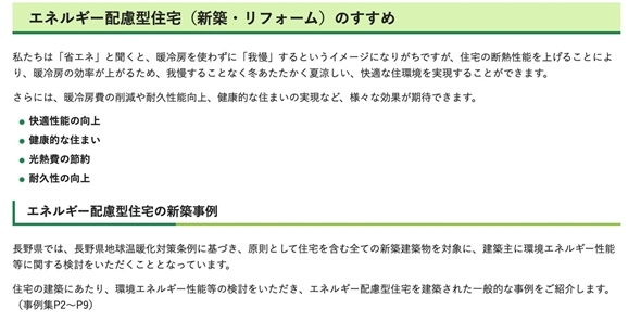 長野県では、省エネってガマンじゃなくて、心地いいことだし、健康になるし、住まいの恒久性につながる事を県のHPでも説明されていて、新築の家の断熱性能を上げることに取り組まれています。